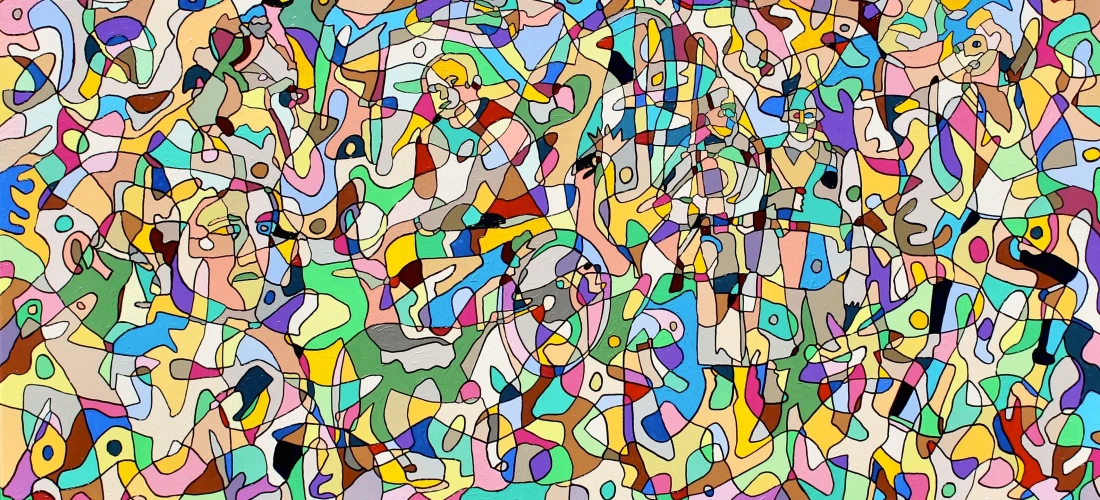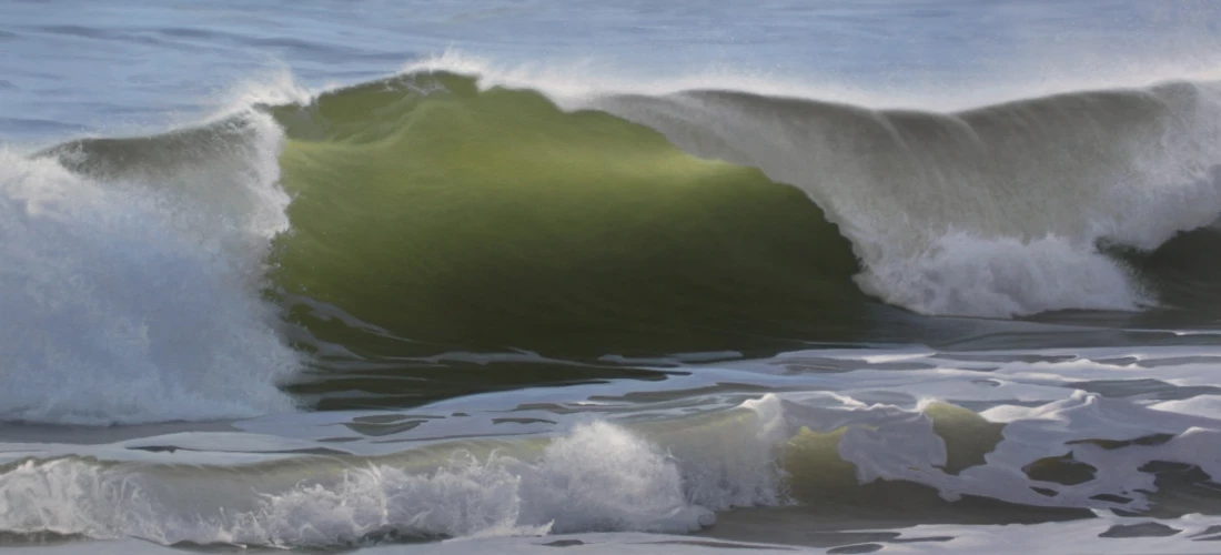 Malte von Schuckmann widmet sich in klassischer Öltechnik dem Meer: Wellen, Gischt, Schaumkronen und der endlose Horizont erscheinen in seinen Bildern als leuchtende, ineinanderfließende Bewegungen. Das Wasser beginnt von innen zu strahlen. Albrecht Behmel überzieht seine teils zitierten Motive mit ornamentalen Linien und vibrierenden Farbfeldern – in seinem „Abstrahismus” verbinden sich Pop, Camouflage und kartografische Struktur.