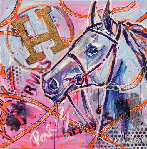 Ihre Malerei oszilliert virtuos zwischen Pop-Art und Modern Art und manifestiert sich in expressiven, großformatigen Porträtzitaten von Stil-Ikonen aus Mode, Film und Sport. Kravchenko versteht es, ihre Leinwände zu lebendigen Bühnen zu verwandeln, auf denen collagierte Elemente wie Zitate und Textfragmente eine eigene Sprache entwickeln. Besonders charakteristisch für ihr Werk sind leuchtende Acrylfarben und die spektakulären Neonakzente, die unter Schwarzlicht eine nahezu magische Wirkung entfalten.