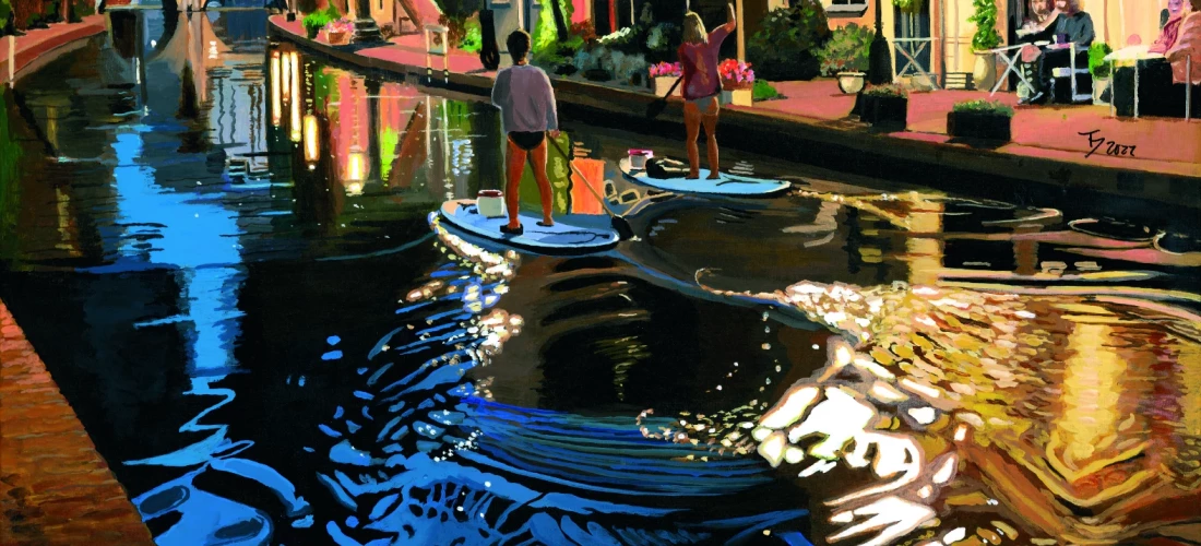 Thomas Düwer works photorealistically: his paintings – whether interiors, cities or technology – seem like random snapshots, yet closer inspection reveals precise execution in oil and acrylic. It’s precisely this care that shifts perception between first impression and final craftsmanship.