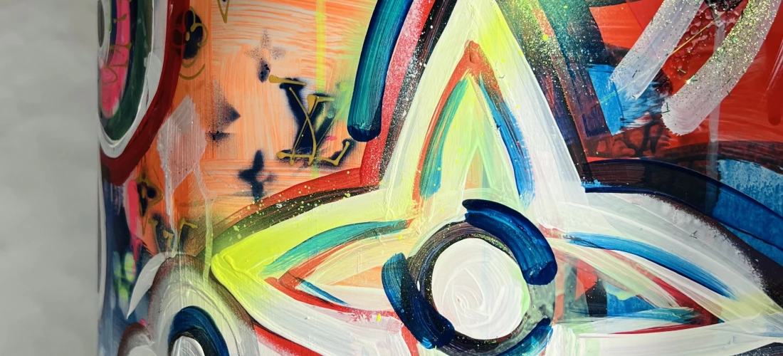 Yuliia Kravchenko works with neon colours, fabric and mixed media. Her portraits shift between careful representation and raw expression. New to the programme is Isyah Asher, whose large-format works combine spray technique, abstracted lines of movement and musicality into powerfully pulsating compositions.